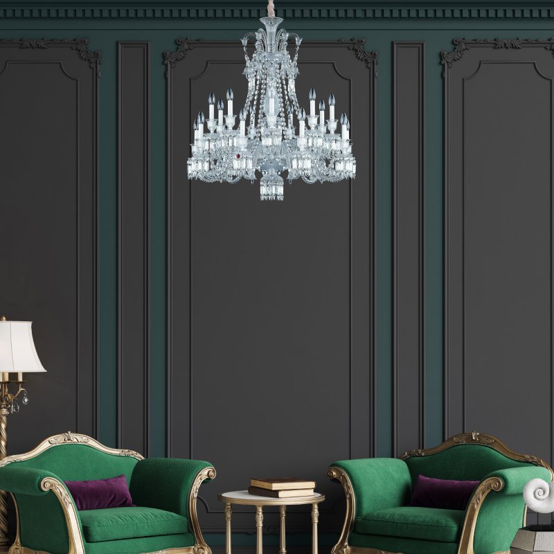 With its soaring silhouette and 18 lights, this chandelier channels classical elegance with a fresh clarity—suited for stairwells, reception areas, or high-ceilinged living rooms.