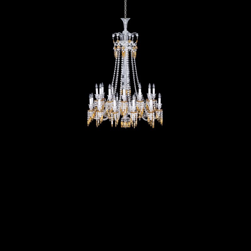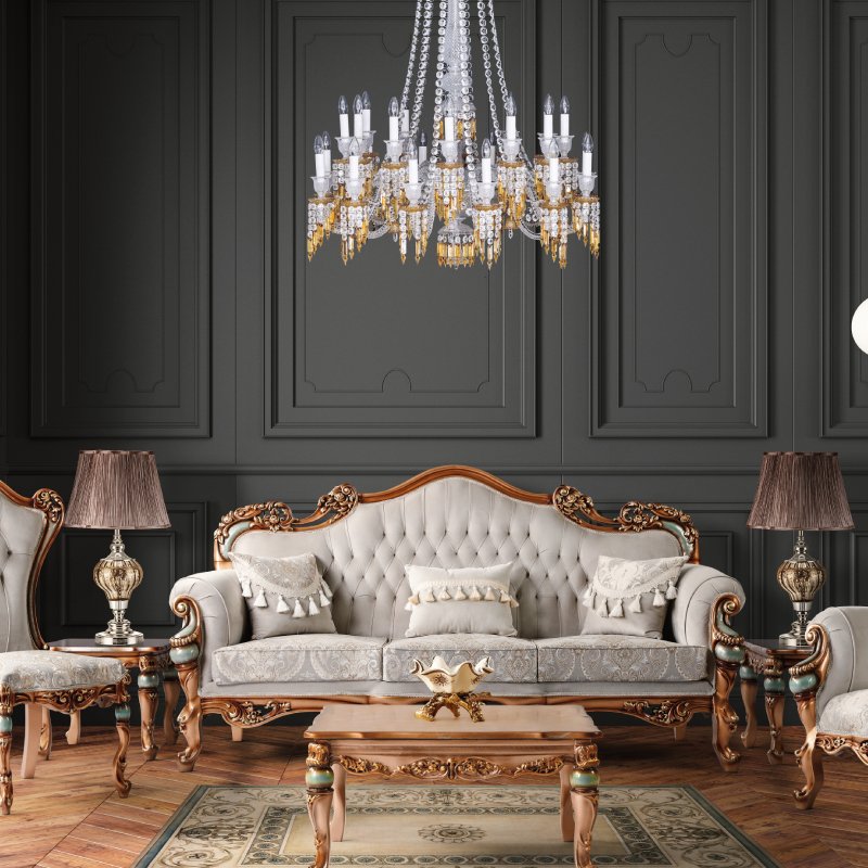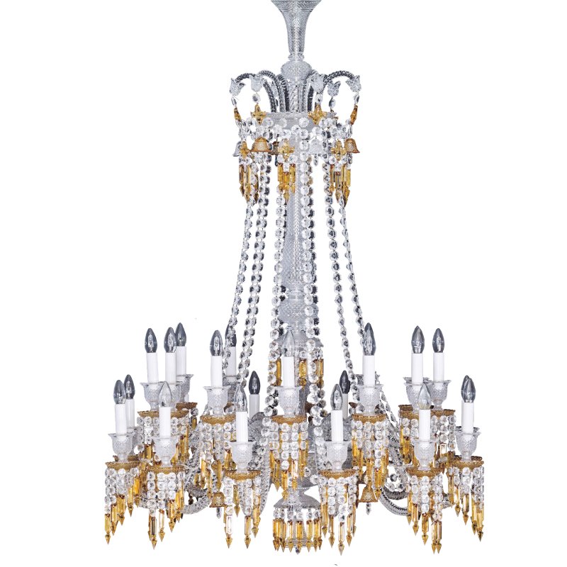 Vertical brilliance and ornate crystal tiers define this stately chandelier—ideal for high-ceiling lounges.