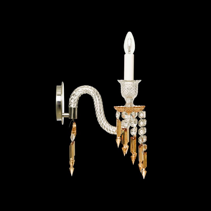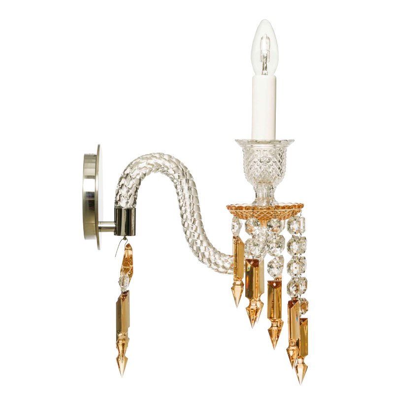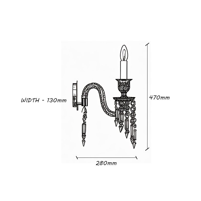 Slightly taller than its counterpart, this one-light crystal sconce adds a vertical statement of elegance. Ideal for narrow walls.