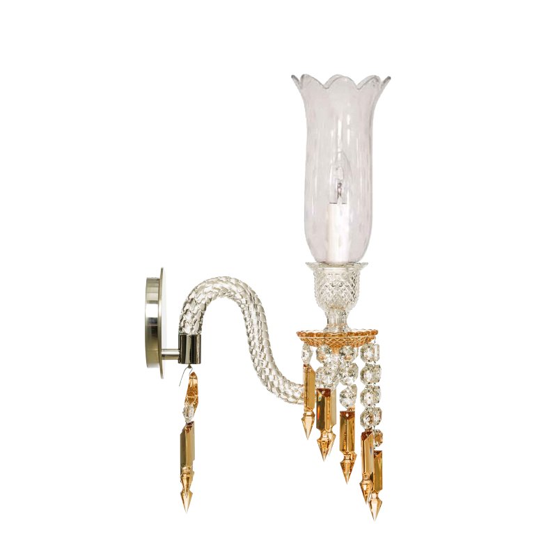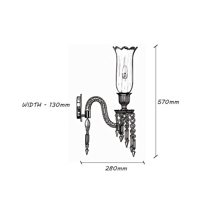 A graceful single-light wall sconce crafted with crystal tubes and Grade A crystal. Its slender profile and radiant clarity offer a timeless glow perfect for intimate, refined settings.